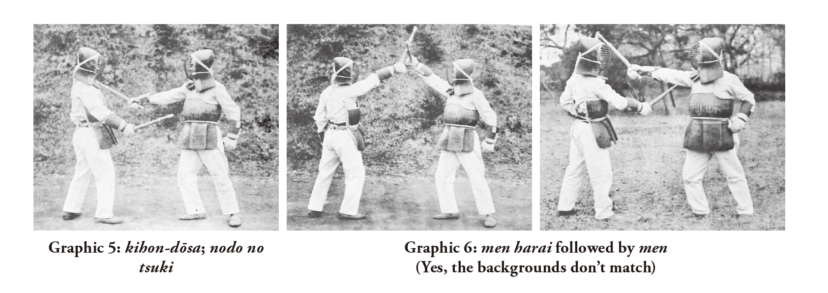- – Harai on men uchi (similar to suri-age, a deflecting technique) followed by another men uchi, depicted in Graphic 6.