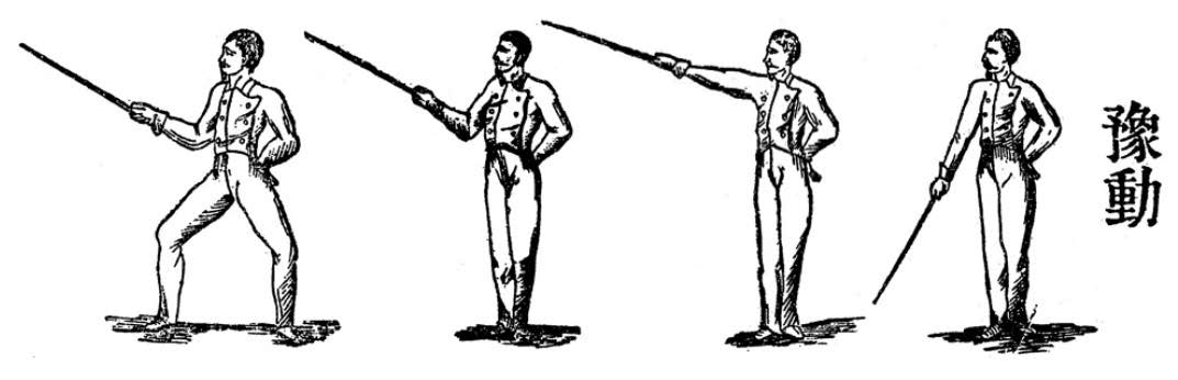 Thus, the 1894 gunto-jutsu emerges as a hybrid, integrating elements of European sabre technique with the principles of Japanese gekken. The manual succinctly presents basic techniques, each accompanied by an illustrative diagram, offering a concise yet comprehensive guide to this innovative martial fusion.